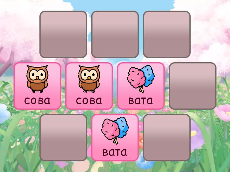 сова - сова, вата - вата, пони - пони, дыня - дыня, лиса - лиса,