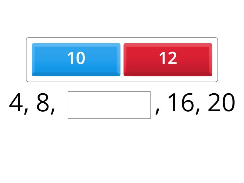 4, 8, ____, 16, 20 4, 8, 12, 16, ____ 12, ____, 20, 24, 28 16, 20, 24, ____, 32 ____, 20, 24, 28, 32 20, 24, 28, ____, 36 ____, 28, 32, ____, 40 4, ____, 12, 16, ____, 24, 28, 32, ____, 40