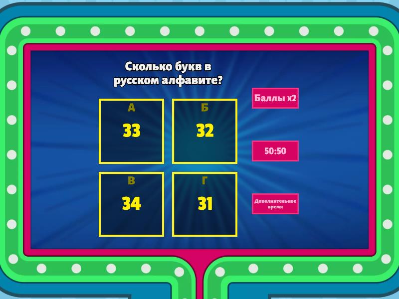 1) Сколько букв в русском алфавите? a) 33 b) 32 c) 34 d) 31 2) Как называется часть речи обозначающая действие предметов? a) существительное b) прилагательное c) глагол d) местоимение 3) Сколько звуков в имени девочки Юлька? a) 7 b) 6 c) 4 d) 5 4) Слова какой части речи могут заменять существительные в предложениях? a) прилагательные b) местоимения c) числительные d) наречия 5) Как называется общая часть родственных слов? a) суффикс b) приставка c) корень d) окончание
