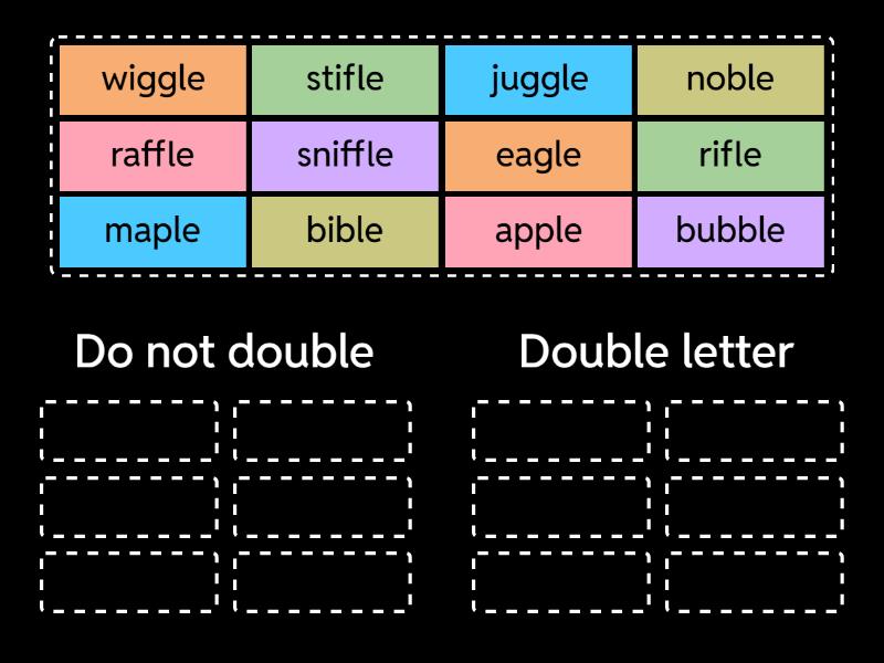 Do not double: rifle, bible, maple, eagle, noble, stifle, Double letter: sniffle, bubble, apple, juggle, wiggle, raffle,