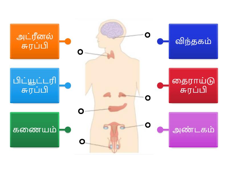 பிட்யூட்டரி சுரப்பி , தைராய்டு சுரப்பி , அட்ரீனல் சுரப்பி , கணையம் , அண்டகம், விந்தகம்.