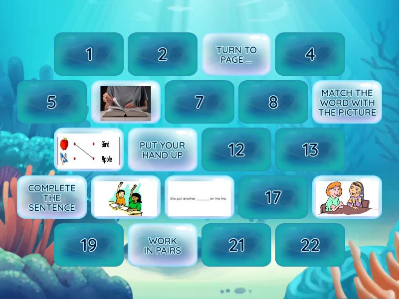 PUT YOUR HAND UP, MATCH THE WORD WITH THE PICTURE, COMPLETE THE SENTENCE, TURN TO PAGE ..., WORK IN PAIRS, CAN I HAVE A RULER, PLEASE?, WHAT PAGE IS IT?, CAN I OPEN THE WINDOW, PLEASE?, CAN YOU REPEAT THE QUESTION, PLEASE?, WHAT'S "MESA" IN ENGLISH? - TABLE, WHAT DOES "SCHOOL" MEAN? - ESCUELA,