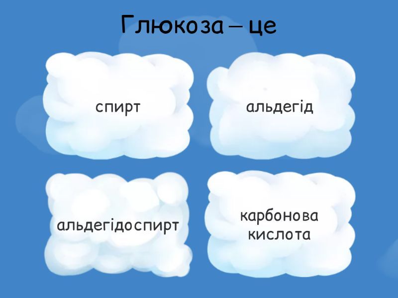 1) Глюкоза – це a) спирт b) альдегід c) альдегідоспирт d) карбонова кислота 2) Спиртове бродіння проходить: a) без доступу кисню b) у присутності ферментів c) при надлишку кисню d) у присутності дріжджів 3) Вкажіть значення відносної молекулярної маси глюкози a) 342 b) 180 c) 120 d) 276 4) У наведеному переліку знайдіть зайву речовину a) глюкоза b) крохмаль c) гліцерол d) сахароза 5) Укажіть групу вуглеводів, до яких відносять глюкозу a) Моносахариди b) Дисахариди c) Полісахариди d) Трисахариди 6) Глюкоза має молекулярну формулу a) С5Н10О5 b) С6Н12О6 c) С12Н22О11 7) Яка з вказаних речовин відноситься до вуглеводів a) натрій ацетат b) сода c) глюкоза d) лимонна кислота 8) Вкажіть кількість гідроксильних груп у молекулі глюкози a) 2 b) 5 c) 4 d) 6 9) Для добування глюкози крохмаль піддають a) окисленню b) галогенуванню c) нітруванню d) гідролізу 10) Вкажіть загальну формулу вуглеводів a) CnH2n+2O b) CnH2nO c) CnH2nO2 d) Cn(H2O)m 11) Молекула ГЛЮКОЗИ містить a) одну альдегідну й п’ять гідроксильних груп b) п’ять альдегідних й одну гідроксильну групу c) одну карбоксильну й п’ять гідроксильних груп 12) За допомогою реакції з купрум(ІІ) гідроксидом без нагрівання можна довести, що глюкоза виявляє властивості: a) одноатомних спиртів b) карбонових кислот c) багатоатомних спиртів 13) Характерною ознакою реакції взаємодії глюкози з купрум(ІІ) гідроксидом без нагрівання є: a) виділення металу b) поява запаху c) утворення осаду червоного кольору d) утворення розчину синього кольору 14) За допомогою реакції "срібного дзеркала" можна довести, що глюкоза виявляє властивості: a) багатоатомних спиртів b) альдегідів c) одноатомних спиртів d) карбонових кислот 15) Характерною ознакою реакції "срібного дзеркала" є: a) поява запаху b) виділення металу c) утворення осаду червоного кольору d) утворення розчину синього кольору 16) Продуктом молочно-кислого бродіння глюкози є: a) вода b) сахароза c) етанол d) молочна кислота 17) Продуктом спиртового бродіння глюкози є: a) вода b) етанол c) фруктоза d) сахароза 18) Продуктом масляно-кислого бродіння глюкози є: a) масляна кислота b) молочна кислота c) фруктоза d) метиловий спирт 19) Продуктами окиснення глюкози в клітинах людського організму є: a) вода b) етанол c) карбон(ІV) оксид d) карбон(ІІ) оксид 20) Позначте речовину, яку використовують для доведення глюкози як альдегіду: a) купрум(ІІ) гідроксид при нагріванні b) натрій гідроксид c) купрум(ІІ) гідроксид без нагрівання d) водень