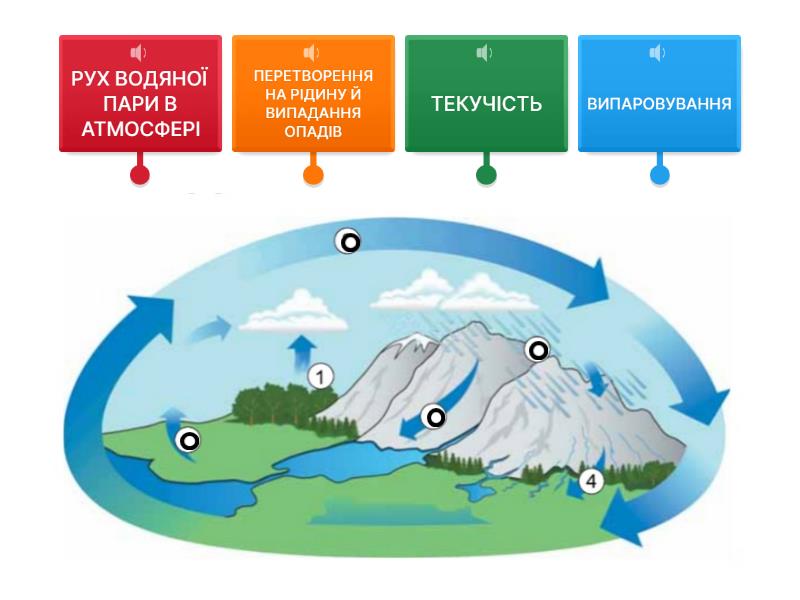 ВИПАРОВУВАННЯ, РУХ ВОДЯНОЇ ПАРИ В АТМОСФЕРІ, ПЕРЕТВОРЕННЯ НА РІДИНУ Й ВИПАДАННЯ ОПАДІВ, ТЕКУЧІСТЬ.