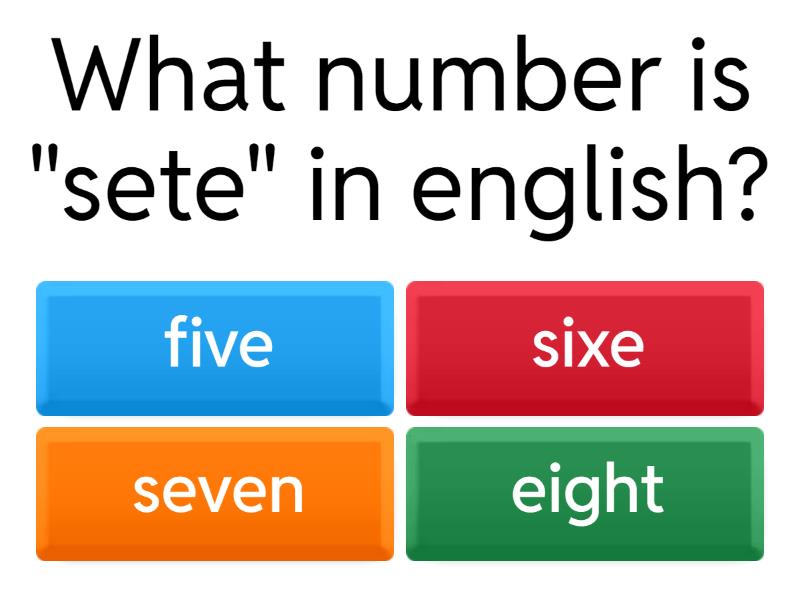 1) What number is "sete" in english? a) five b) sixe c) seven d) eight 2) How do you say "12" in english? a) twenty b) twelve c) thirteen d) ten 3) Qual é o número "fifteen" em português? a) quinze b) quatorze c) dezesseis d) doze 4) which number is bigger? a) 9 b) 11 c) 7 d) 5 5) complete: / have ___ books. ( Eu tenho 20 livros) a) ten b) twenty c) twelve d) two 6) what is "primeiro" in inglish? a) second b) first c) third d) fourth 7) which is the correct order? a) first-third-second b) first-second-third c) second-first-third d) third-second-first 8) o que significa "fifth" em português ? a) quinto b) quarto c) sexto d) nono 9) today is my ____ birthday (é meu 21° aniversário) a) twenty-one b) twenty-first c) twenty-one-th d) twenty-firsts 10) which is the 7th month of the year? a) June b) july c) august d) may