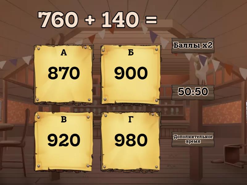 1) 760 + 140 = a) 870 b) 900 c) 920 d) 980 2) Сумма 5100 и 1400  a) 5700 b) 6300 c) 6500 d) 8400 3) Произведение 120 и 4 a) 124 b) 116 c) 480 d) 30 4) Частное чисел 66 и 11 a) 77 b) 55 c) 6 d) 1234 5) Найди х в уравнении х - 820 = 1000 a) 180 b) 1820 c) 120 d) 1280 6) Площаль квадрата со стороной 10 см  a) 40 b) 20 c) 100 d) 1000 7) Периметр квадрата со стороной 100 см a) 10 b) 400 c) 10000 d) 200 8) 77 + 17 = a) 46 b) 73 c) 91 d) 94 9) Найди 1/5 часть сотни a) 25 b) 500 c) 50 d) 20 10) Произведение 4, 4 и 4 a) 64 b) 12 c) 8 d) 1