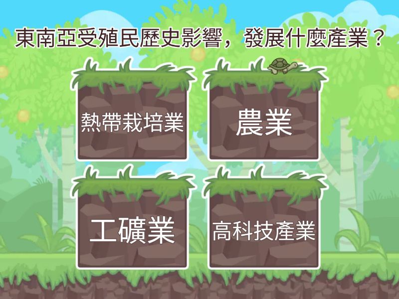 1) 東南亞受殖民歷史影響,發展什麼產業? a) 熱帶栽培業 b) 農業 c) 工礦業 d) 高科技產業 2) 港埠型都市有什麼特色? a) 位在河運、海運發達處 b) 對外交通便利 c) 殖民者為運送物資建設 d) 運輸資源不便 3) 東南亞國家有什麼經濟發展優勢? a) 地理位置優越 b) 豐富自然資源 c) 高技術勞工 d) 資金豐富 e) 勞工便宜且眾多