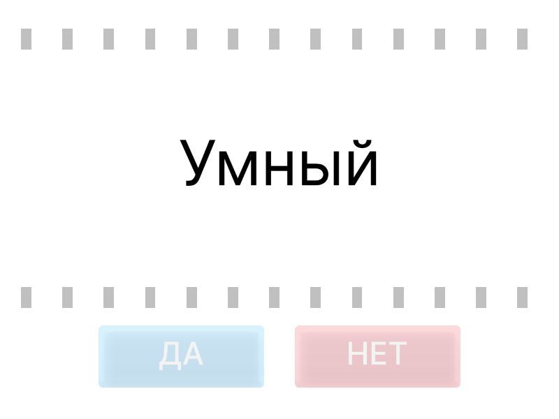 ДА: Умный, Смелый, Вкусный, Весёлый, Деревянный, Новый, НЕТ: Бежит, Снег, Утюг, Кот, Учится,