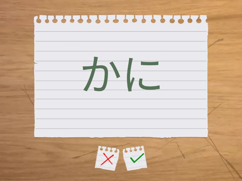 なつ - なつ natsu, にし - にし nishi, おに - おに oni, ねこ - ねこ neko, のど - のど nodo, たぬき - たぬき tanuki, きつね - きつね kitsune, いぬ - いぬ inu, かに - かに kani, うた - うた uta,