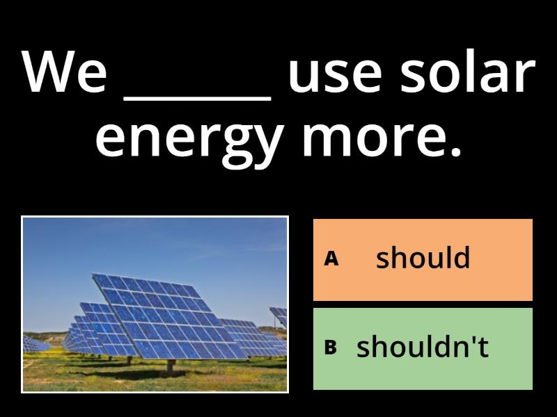 1) We ______ use solar energy more. a) should b) shouldn't 2) You ______ drink a lot of water. a) should b) shouldn't 3) You _______ go to bed late. a) should b) shouldn't 4) We ______ plant more trees. a) should b) shouldn't 5) You _______ eat a lot of junk food. a) should b) shouldn't 6) You _______ play video games all day. a) should b) shouldn't 7) We _______ throw away rubbish into the sea. a) should b) shouldn't 8) You ______ brush your teeth. a) should b) shouldn't 9) You ______ go to the dentist once a year. a) should b) shouldn't 10) We _______ kill animals for sport. a) should b) shouldn't 11) You ______ wear sunblock when outside on a hot day. a) should b) shouldn't 12) You ______ do some exercise. a) should b) shouldn't 13) You _______ watch a lot of TV. a) should b) shouldn't 14) We ______ turn off the lights when we don't need them. a) should b) shouldn't 15) You _______ play with fire. a) should b) shouldn't 16) You _______ smoke. a) should b) shouldn't 17) We ______ use electric cars. a) should b) shouldn't 18) We ______ turn off the tap when we don't use it. a) should b) shouldn't 19) We _______ waste paper. a) should b) shouldn't 20) You ______ eat a lot of fruit. a) should b) shouldn't 21) You _______ drink a lot of soda. a) should b) shouldn't 22) You ______ sleep eight hours every day. a) should b) shouldn't 23) You should ______ the dentist once a year. a) travel b) drink c) visit d) play 24) You should ______ eight hours a day. a) go b) stay c) brush d) sleep 25) You should ______ more fruits and vegetables. a) eat b) drink c) vomit d) swim 26) You should ______ your hands before every meal. a) wash b) watch c) work d) walk 27) You shouldn't ______. a) eat b) smoke c) play d) work 28) You should ______ your teeth after every meal. a) look b) wash c) listen d) brush 29) You should ______ some exercise every day. a) do b) make c) run d) walk 30) You should ______ your coat in winter. a) sell b) buy c) wear d) destroy 31) You shouldn't ______ to bed late. a) sleep b) go c) visit d) work 32) You shouldn't ______ too much alcohol. a) disgust b) spill c) eat d) drink