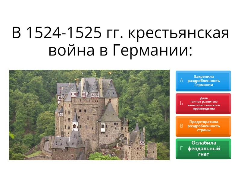 1) В 1524-1525 гг. крестьянская война в Германии: a) Закрепила раздробленность Германии b) Дала толчок развитию капиталистического производства c) Предотвратила раздробленность страны d) Ослабила феодальный гнет 2) В 1526 г. Индия подверглась вторжению войска ... a) Чингисхана. b) Бабура из Средней Азии. c) Тамерлана из Мавераннахра. d) Турок-сельджуков. 3) В 1533-1584 гг. в России царем был: a) Иван III b) Василий III c) Иван IV d) Василий II 4) В 1552 году Россия завоевала: a) Крымское ханство. b) Астраханское ханство. c) Казанское ханство. d) Сибирское ханство. 5) В 1582 году инициатором создания нового календаря явился: a) Император Рима. b) Король Великобритании. c) Глава православной церкви патриарх Тихон. d) Глава католической церкви папа Григорий ХШ. 6) В 16-17 в.в. распространился новый инструмент - клавесин, предшественник: a) Аккордеона. b) Баяна. c) Рояля. d) Органа. 7) В 1600 году в Риме по приказу отцов церкви был сожжен на костре: a) Н. Коперник. b) Ф. Бэкон. c) Г. Галилей. d) Д. Бруно. 8) В 1629 году английский король Карл I: a) Ввел в Англии конституционное правление. b) Расширил полномочия парламента. c) Распустил парламент. d) Отрекся от престола. 9) В 1637 году донские казаки взяли турецкую крепость: a) Измаил. b) Азов. c) Константинополь. d) Керчь. 10) В 1653 г. в Англии установлена: a) Военная диктатура. b) Власть английской церкви. c) Конституционная монархия. d) Абсолютная монархия. 11) В 1772 году соглашение о разделе Польши заключили три монарха государств: a) Сербия, Валахия, Россия. b) B)Австрия, Пруссия, Россия. c) Россия, Дания, Голландия. d) Франция Англия, Пруссия. 12) В 1762 году произошло событие: a) Освобождение дворянства от военной и государственной службе. b) Учреждении Верховного тайного совета. c) Первый раздел Польши. d) Проведена губернская реформа. 13) В 1877 г. королева Великобритании Виктория была провозглашена императрицей a) Индии b) США c) Ирландии d) Новой Зеландии 14) В 1882 г. Египет оккупировали войска: a) Турции. b) Великобритании. c) Италии. d) Франции. 15) В 1920-ые годы в американском городе Чикаго прославился синдикат гангстеров a) Триады b) Аль Капоне c) Рокфеллера d) Дюпона 16) В 1928 г. подписан пакт Бриана-Келлога: a) О создании международных вооруженных сил b) Об осуждении войны как средства международной политики c) О нейтралитете d) О снятии запрета на торговлю с СССР 17) В 1936 г. английский экономист Дж.М.Кейнс в книге "Теория занятости, процента и денег" предложил эффективную теорию: a) Реконверсии экономики b) Развития банковской системы c) Увеличения промышленного производства d) Выхода из экономического кризиса 18) В 1942 г. итальянский физик Э.Ферми и американский ученый Р.Оппенгеймер возглавили проект по. a) Милитаризации экономики b) Выпуску новых танков c) Созданию ракетного оружия d) Созданию атомной бомбы 19) В 1945 г. атомное оружие было в арсенале ... a) СССР. b) Франции. c) США. d) Англии. 20) В 1946 году в Индии национально-освободительная борьба началась в a) Бомбее b) Дели c) Пенджабе d) Калькутте 21) В 1946-1954 годах Вьетнам боролся против колонизации со стороны: a) Англии. b) Японии. c) Франции. d) Германии. 22) В 1952 году в НАТО вступила: a) Западная Германия b) Франция c) Англия d) Греция 23) В 1952 году вышла в свет работа Сталина: a) "Целина". b) "Экономические проблемы социализма в СССР". c) "Новое политическое мышление". d) "О кооперации". 24) В 1960 году в Южной Корее установлена власть военной хунты под руководством a) Ли Сын Мана. b) РоДэУ. c) Пак Чон Хи. d) Ким Ир Се