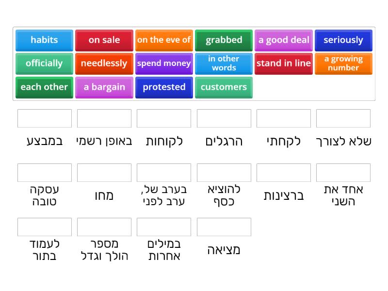 a bargain - מציאה, a good deal - עסקה טובה, a growing number - מספר הולך וגדל, customers - לקוחות, each other - אחד את השני, grabbed - לקחתי, habits - הרגלים, in other words - במילים אחרות, needlessly - שלא לצורך, officially - באופן רשמי, on sale - במבצע, on the eve of - בערב של, ערב לפני, protested - מחו, seriously - ברצינות, spend money - להוציא כסף, stand in line - לעמוד בתור,