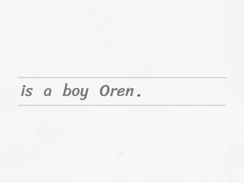 Oren is a boy. , Shira is a girl. , Dan is a pupil. , Ben is my brother., Liat is my best friend. , Alon is at home. , The cat is fat. , Sharon is a teacher. , My mom is at the kitchen., My family is big., The kids are in the yard., I am sick., I am in the shopping mall.,