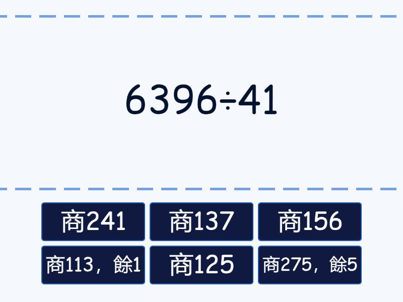 商156 - 6396÷41, 商241 - 7712÷32, 商125 - 4375÷35, 商137 - 9727÷71, 商275,餘5 - 6880÷25, 商113,餘1 - 1470÷13,