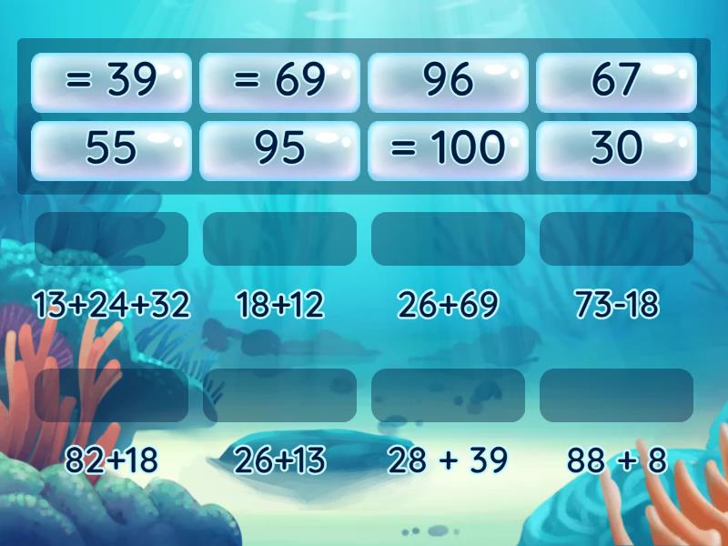 55 - 73-18 , 95 - 26+69, 30 - 18+12, 67 - 28 + 39 , 96 - 88 + 8 , = 100 - 82+18, = 69 - 13+24+32, = 39 - 26+13,