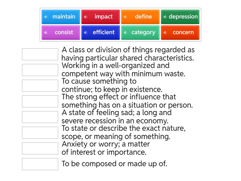development - The process of growing or changing and becoming more advanced., compact - Closely and neatly packed together; small and efficient in size., achieve - To successfully bring about or reach a desired objective or result., efficient - Working in a well-organized and competent way with minimum waste., category - A class or division of things regarded as having particular shared characteristics., impact - The strong effect or influence that something has on a situation or person., dependent - Needing someone or something else for support, help, or life., severe - Very great; intense; strict or harsh., feedback - Information about reactions to a product or a person's performance, used as a basis for improvement., concern - Anxiety or worry; a matter of interest or importance., succession - A number of people or things following one after the other., detect - To discover or identify the presence or existence of something, viewpoint - A particular way of thinking about or looking at something., secondary - Coming after, less important than, or resulting from something primary., despite - Without being affected by; in spite of., maintain - To cause something to continue; to keep in existence., composition - The nature of something's ingredients or constituents; the way something is made up., define - To state or describe the exact nature, scope, or meaning of something., depression - A state of feeling sad; a long and severe recession in an economy., logical - Based on clear, sound reasoning., consist - To be composed or made up of., obtain - To get, acquire, or secure something.,