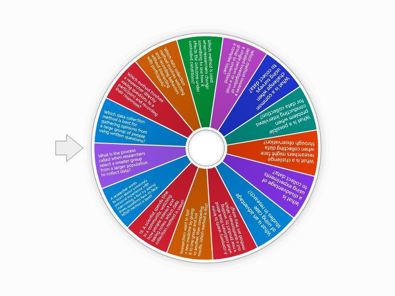 1) Which data collection method is best for gathering opinions from a large group of people using written questions? a) An experiment b) an observation c) a case study d) a survey 2) Which method involves a researcher directly asking questions to a participant and recording their responses? a) interviews b) surveys c) experiments d) observations 3) Which data collection method involves watching and recording behaviors without interacting with participants? a) survey b) observation c) interview d) experiment 4) Which method is used when researchers change something to see how it affects the outcome under controlled conditions? a) survey b) case study c) observation d) experiment 5) Which method involves a detailed investigation of a single person or a small group to understand a complex issue? a) case study b) survey c) experiment d) observation 6) What is a common challenge when using surveys to collect data? a) response bias b) high cost c) limited audience d) no standard format 7) What is a possible problem when conducting interviews for data collection? a) limited sample size b) no flexibility c) no need for recording d) interviewer bias 8) What is a challenge researchers might face when collecting data through observation? a) limited sample size b) observer bias c) no firsthand information d) no need for notes 9) What is a disadvantage of using experiments to collect data? a) artificial settings may limit generalizability b) no control over variables c) no way to measure outcomes d) no ethical concerns 10) What is an advantage of using case studies in research? a) quick results b) large sample size c) standardized questions d) rich, detailed information 11) A company wants to know what customers think about a new product by sending out a questionnaire. Which method are they using? a) interview b) observation c) survey d) experiment 12) Researchers want to test a new medicine by giving it to one group and not to another, then comparing results. Which method is this? a) survey b) experiment c) observation d) case study 13) 13. A scientist spends time in a community, watching how people interact and taking notes. Which data collection method is used? a) survey b) observation c) interview d) experiment 14) A researcher wants to learn about someone's personal experience with overcoming a fear by asking them questions face-to-face. Which method is best? a) interview b) survey c) experiment d) observation 15) What is the process called when researchers select a smaller group from a larger population to collect data? a) experimenting b) observing c) interviewing d) sampling