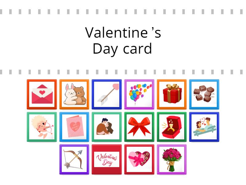 Valentine’s Day card, Valentine’s Day, Valentine’s Day present , Ribbon , Bouquet , Valentine’s date, Couple , Love letter , Bow, Chocolates, Box of chocolates , Hug, Ring, Balloons , Arrow, Cupid,