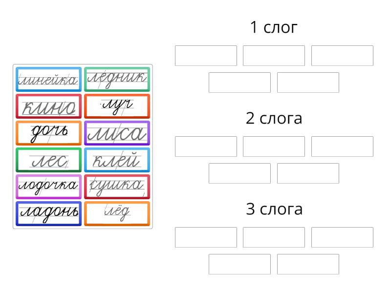 1 слог: , , , , , 2 слога: , , , , , 3 слога: , ,