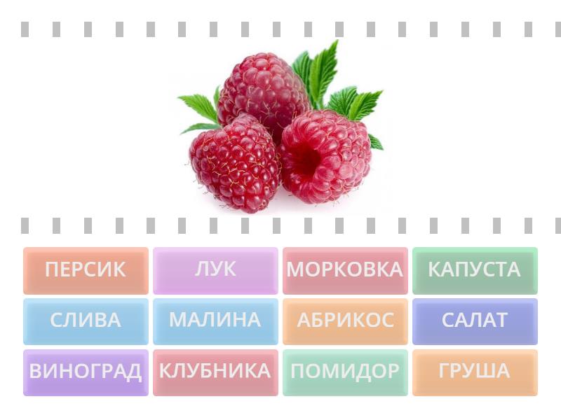 МАЛИНА, КЛУБНИКА, АБРИКОС, КАПУСТА, ЛУК, САЛАТ, ПОМИДОР, ПЕРСИК, ВИНОГРАД, СЛИВА, МОРКОВКА, ГРУША,
