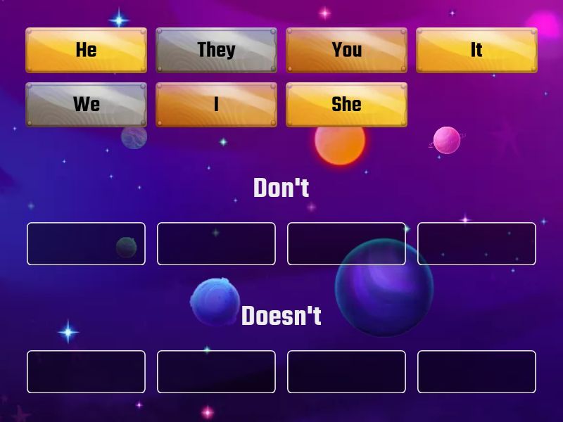 Don't: I, You, We, They, Doesn't: He, She, It,