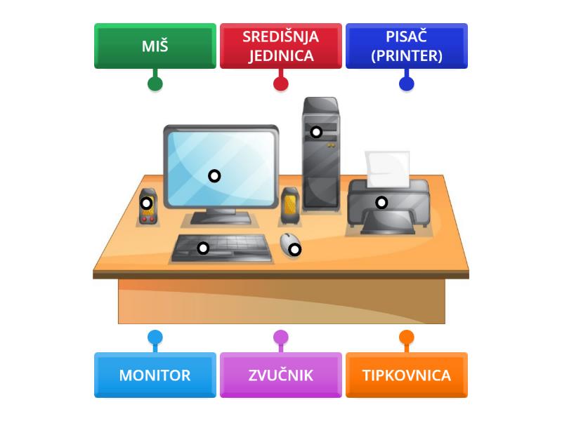 MONITOR, SREDIŠNJA JEDINICA, TIPKOVNICA, MIŠ, ZVUČNIK, PISAČ (PRINTER).