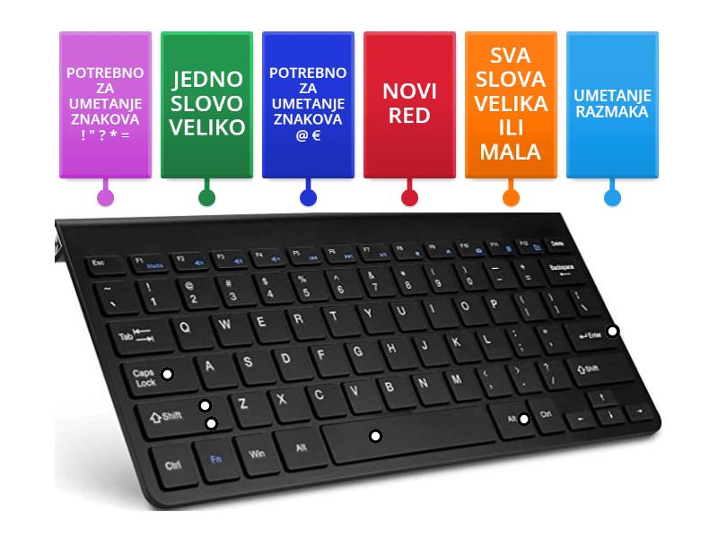UMETANJE RAZMAKA, NOVI RED, SVA SLOVA VELIKA ILI MALA, JEDNO SLOVO VELIKO, POTREBNO ZA UMETANJE ZNAKOVA ! " ? * =, POTREBNO ZA UMETANJE ZNAKOVA @ €.