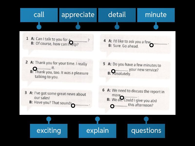 minute, appreciate, exciting, questions, explain, detail, call.