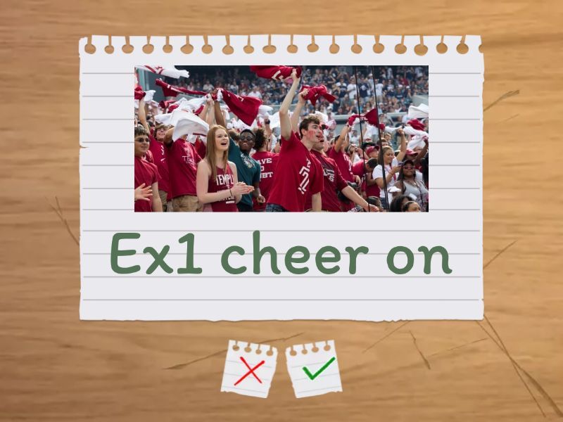 Ex1 cheer on - to shout loudly in order to encourage someone in a competition вболівати за когось, feel put off - засмучуватись, get down to sth (Ving) - to start to direct your efforts and attention towards something (приступати до чогось), stand out from the crowd - to be very noticeable (виділятися з натовпу), Ex2 take to succeed - добиватись успіху, carry off - to succeed in doing something difficult; or to take something away /успішно впоратися / забрати щось, carry out - to do, perform, or complete a task or plan /виконувати, здійснювати, carry on - o continue doing something; or to behave excitedly/annoyingly продовжувати / поводитися шумно, carry in - to bring something inside/заносити всередину, rigorous - careful to look at or consider every part of something to make certain it is correct or safe /ретельний, пильний, look up to - рівнятися на когось, make up for - компенсувати, виправити, Ex3 break down - to stop working (machines); or to become very upset / ламатися / втрачати контроль над емоціями, get down - to make someone feel sad; or to start doing something seriously (informal) / засмучувати / братися до справи, set down - to put something down; or to write/record something officially. / ставити, покласти / записувати, формулювати, turn down - to refuse an offer; or to reduce volume/brightness. / відхиляти / зменшувати (гучність, світло),