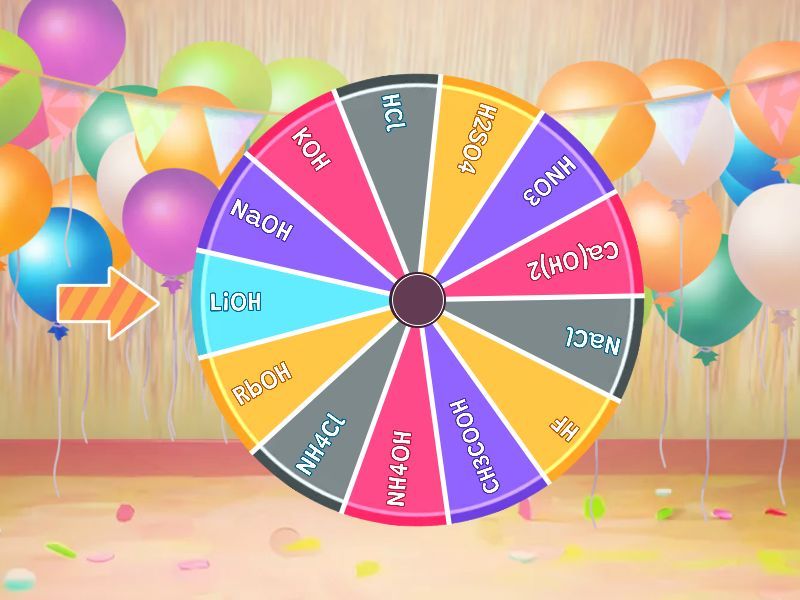 1) NaOH 2) KOH 3) HCl 4) H2SO4 5) HNO3 6) Ca(OH)2 7) NaCl 8) HF 9) CH3COOH 10) NH4OH 11) NH4Cl 12) RbOH 13) LiOH