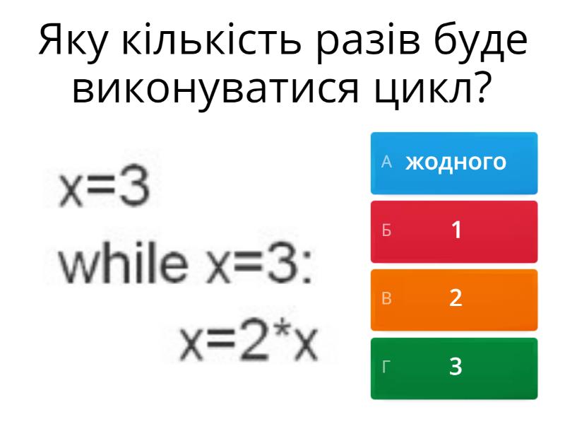 1) Яку кількість разів буде виконуватися цикл? a) жодного b) 1 c) 2 d) 3 2) Яку кількість разів буде виконуватися цикл? a) жодного b) 1 c) 2 d) 3 3) Яку кількість разів буде виконуватися цикл? a) жодного b) 1 c) 2 d) 3 4) Яку кількість разів буде виконуватися цикл? a) жодного b) 1 c) 2 d) 3 5) Яку кількість разів буде виконуватися цикл? a) жодного b) 1 c) 2 d) 3