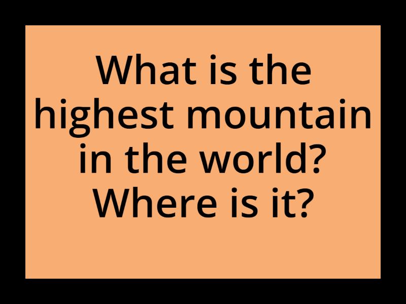What is the biggest desert in the world? Where is it? - The biggest desert, the Sahara, is in Africa., What is the highest mountain in the world? Where is it? - The highest mountain, Everest, is in Asia., Where is the biggest jungle in the world? - The biggest jungle is in South America.,