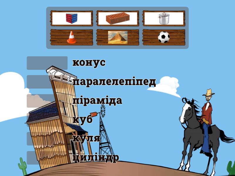 піраміда, куб, конус, куля, циліндр, паралелепіпед,