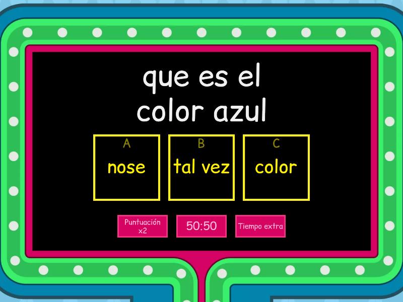 1) que es el color azul a) nose b) tal vez c) color  2) cual es el animal mas grande a) ballena b) perro c) flamenco