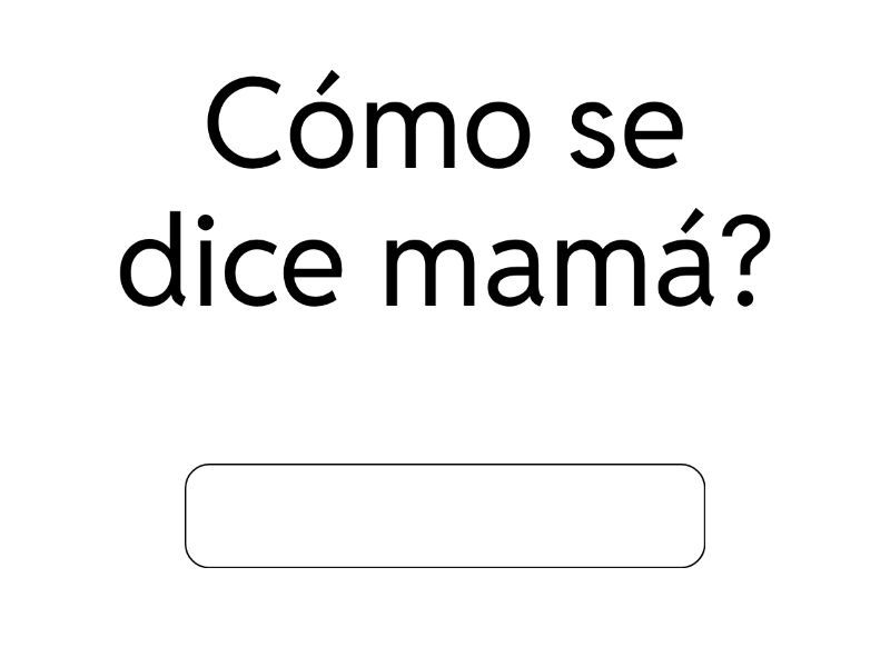 Cómo se dice HOLA en inglés?, Cómo se dice CHAU?, Cómo se dice mamá?, Cómo se dice papá?.