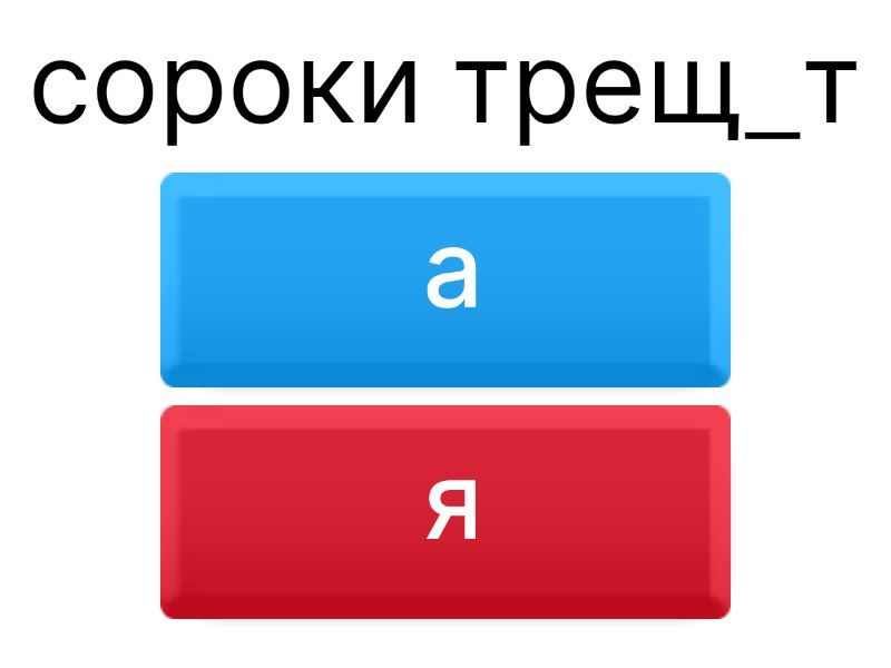 1) сороки трещ_т a) а b) я 2) на дне оке_на a) а b) я 3) тр_петать на ветру a) и b) е 4) др_чливый котёнок a) о b) а 5) см_листый пенёк a) о b) а 6) р_дные края a) о b) а 7) тр_петать на ветру a) и b) е 8) красивый пл_ток a) а b) о 9) верный т_варищ a) о b) а 10) склад с овощ_ми a) я b) а 11) ст_клянная посуда a) е b) я 12) отв_чать на письмо a) е b) я 13) в ч_тырёх местах a) е b) я 14) крутой б_режок a) и b) е 15) яркий ог_нёк a) о b) а