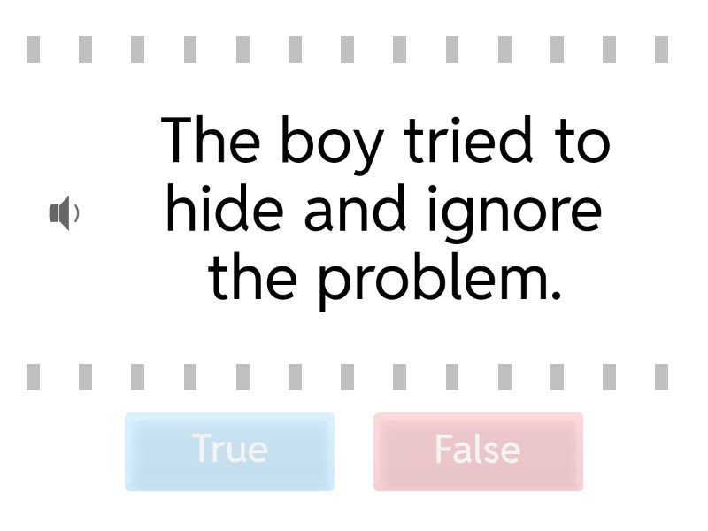 True: The boy tried to hide and ignore the problem., The boy finally chose to face the problem., Inside the problem, there was an opportunity., The boy learned that every problem can have something good inside., False: The boy wanted the problem., Worry made his problem smaller.,