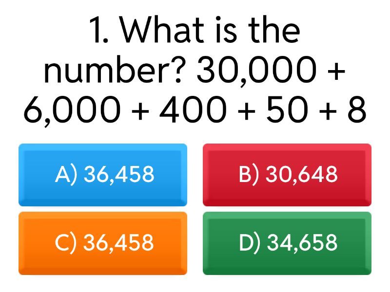 1) 1. What is the number? 30,000 + 6,000 + 400 + 50 + 8 a) A) 36,458 b) B) 30,648 c) C) 36,458 d) D) 34,658 2) 2. Decompose 7,204 a) A) 7,000 + 200 + 4 b) B) 7,000 + 20 + 40 c) C) 7,00 + 200 + 40 d) D) 70 + 2,000 + 40 3) 3. Which is another correct way to decompose 5,318? a) A) 5,000 + 300 + 10 + 8 b) B) 4,000 + 1,318 c) C) 5,000 + 200 + 100 + 18 d) D) All of the above 4) 4. Compose the number: a) A) 4,907 b) B) 4,097 c) C) 4,977 d) D) 4,197 5) 5. Error analysis: 4,608 = 4,000 + 600 + 80 + 8 a) A) Correct b) B) Wrong 6) 6. What number matches this clue? “I have 6 thousands, 4 hundreds, 2 tens, and 9 ones.” a) A)6,249 b) B) 6,492 c) C) 6,429 d) D) 6,294 7) 7. Which expanded form is correct for 9,503? a) A) 9,000 + 500 + 0 + 3 b) B) 9,000 + 50 + 3 c) C) 9,500 + 3 d) D) 900 + 5,000 + 30 8) 8. Decompose 46,028 a) A) 40,000 + 6,000 + 20 + 8 b) B) 4,000 + 6,000 + 20 + 8 c) C) 40,000 + 600 + 20 + 8 d) D) 46,000 + 28 9) 9. Which number is composed from: 50,000 + 3,000 + 80 + 6 a) A) 50,386 b) B) 53,806 c) C) 53,086 d) D) 50,836 10) 10. Find the error: 3,407 = 3,000 + 400 + 70 + 7 a) A) Correct b) B) Wrong (the tens place is incorrect)