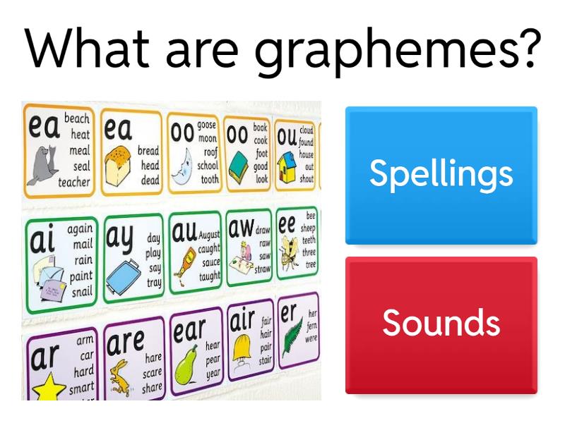 1) What are graphemes? a) Spellings b) Sounds 2) What are phonemes? a) Spellings b) Sounds 3) A base word is a) a word without suffixes and prefixes b) a word with suffixes and prefixes 4) morphemes are a) sounds in words b) units of meaning 5) A suffix is a morpheme a) True b) False 6) The base in the word 'action' is a) acting b) act 7) The base in the word 'hopelessly' is a) hope b) hopeless 8) The base in the word cats is a) cat b) kitten 9) The <ed> in the word 'surfed' means a) happened in the past b) will happen 10) The <es> in the word 'pancakes' means a) flapjacks b) more than one