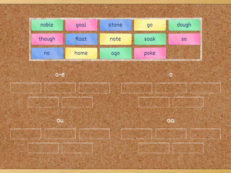 o-e: note, poke, home, stone, o: so, go, no, noble, ago, ou: dough, though, oa: soak, goal, float,