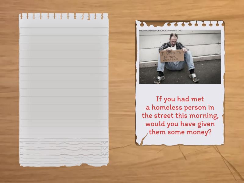 If you had been born 100 years earlier, how would your life have been different?, If you had been born into a very rich family, how would your childhood have been different?, If you had been given a million euros or dollars for your birthday, how would you have spent it?, If the Allies hadn’t won World War II, how would the twentieth century have been different?, If somebody had invited you to an all-night rave last weekend, would you have gone?, If you had found a thousand euros or dollars in the street this morning, what would you have done?, If you had met a homeless person in the street this morning, would you have given them some money?, If you had been your country’s leader for the past 10 years, would you have done anything differently?, If you had been able to eat whatever you wanted as a child, what would you have eaten?, If you had been able to choose your career when you were a child, what would you have chosen?, If a bully at school had told you to give him your lunch money, would you have given it to him?, If you had been offered a potion at school to make you pass all your exams, would you have taken it?.