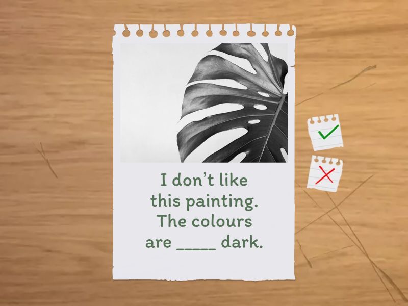 I can’t buy these jeans. They’re ______ expensive. - too, Is the water warm _______? I want to go swimming. - enough, Jim is talented and Lee is talented too, but is Lee ______ talented as Jim? - as, I don’t like this painting. The colours are _____ dark. - too, The apples are cheap, but they aren’t ______ cheap as the oranges. - as, I can’t play basketball. I’m not tall _______ - enough, I like my town, but it’s ______ quiet for me. - too,