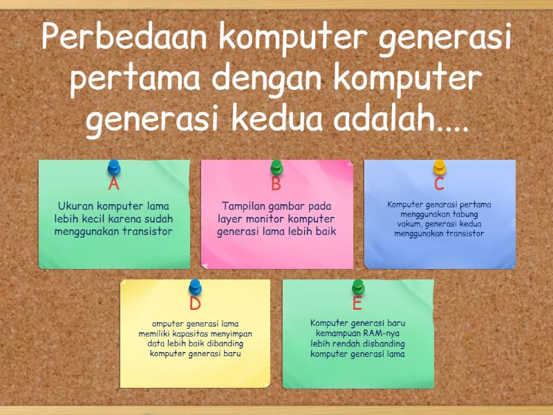 1) Yang dijuluki sebagai bapak komputer adalah…. a) Isaac Newton b) Charles Babbage c) Bill Gates d) Alan Turing e) Konrad Zuse 2) Perbedaan komputer generasi pertama dengan komputer generasi kedua adalah.... a) Ukuran komputer lama lebih kecil karena sudah menggunakan transistor b) Tampilan gambar pada layer monitor komputer generasi lama lebih baik c) Komputer genarasi pertama menggunakan tabung vakum, generasi kedua menggunakan transistor d) omputer generasi lama memiliki kapasitas menyimpan data lebih baik dibanding komputer generasi baru e) Komputer generasi baru kemampuan RAM-nya lebih rendah disbanding komputer generasi lama 3) Dampak negatif Teknologi Informasi dan komunikasi (TIK) dalam bidang Pendidikan, kecuali… a) Informasi yang dibutuhkan untuk menjadi lebih cepat dan lebih mudah dalam mengakses tujuan pendidikan b) Program – program tes akan mudah sekali bocor ke publik c) Orang – orang tidak bertanggung jawab melakukan kejahatan seperti perubahan nilai ujian peserta d) Plagiat/contek/meniru dan melakukan kecurangan akan sangat mudah e) Semangat belajar menjadi berkurang tergantikan dengan bermain media social favorit 4) Di bawah ini yang termasuk aspek ekonomi produk informatika, kecuali…. a) iklan b) Penjualan Software c) M-Banking d) E-commerce e) E-learning 5) Dampak negatif perkembangan teknologi terkait aspek sosial budaya adalah…. a) Mempermudah komunikasi antar manusia b) Berkomunikasi melalui ponsel ketimbang datang langsung untuk bertemu secara tatap muka c) Mempermudah pendistribusian karya-karya anak bangsa d) Mempermudah adanya pertukaran pelajar antar negara e) Mempermudah seseorang di suatu Negara mengetahui berbagai macam budaya yang ada di belahan bumi yang lain 6) Berikut yang merupakan peranan komputer dalam bidang sosial budaya, kecuali…. a) Memecah belah persatuan b) Mempersatukan bangsa c) Promosi wisata d) Memperkenalkan kebudayaan e) Menciptakan lapangan pekerjaan 7) Berikut ini bukan bentuk komunikasi digital, yaitu...... a) E-mail b) Sms c) Bertatap muka d) chatting e) Zoom meeting 8) Hak ekslusif yang diberikan suatu perarturan kepada seseorang atau sekelompok orang atas karya ciptanya disebut.... a) Hak Atas Kekayaan Intelektual b) Hak Paten c) Hak Cipta d) Merk e) Rahasia Dagang 9) Tujuan diadakannya hak kekayaan intelektual,adalah.... a) Supaya hasil karya seorang tidak dinikmati semua orang b) Supaya Negara mendapat keuntungan c) Supaya hasil karya seorang tidak ditiru d) Supaya inovasi dan kreativitas terus berkembang e) Supaya hasil karya seorang tidak dibajak 10) Tanda yang berupa gambar, nama, kata, huruf-huruf, angka-angka, susunan warna, atau kombinasi dari unsur-unsur tersebut yang memiliki daya pembeda dan digunakan dalam kegiatan perdagangan barang / jasa disebut..... a) Hak Atas Kekayaan Intelektual b) Hak Paten c) Hak Cipta d) Merk e) Rahasia Dagang