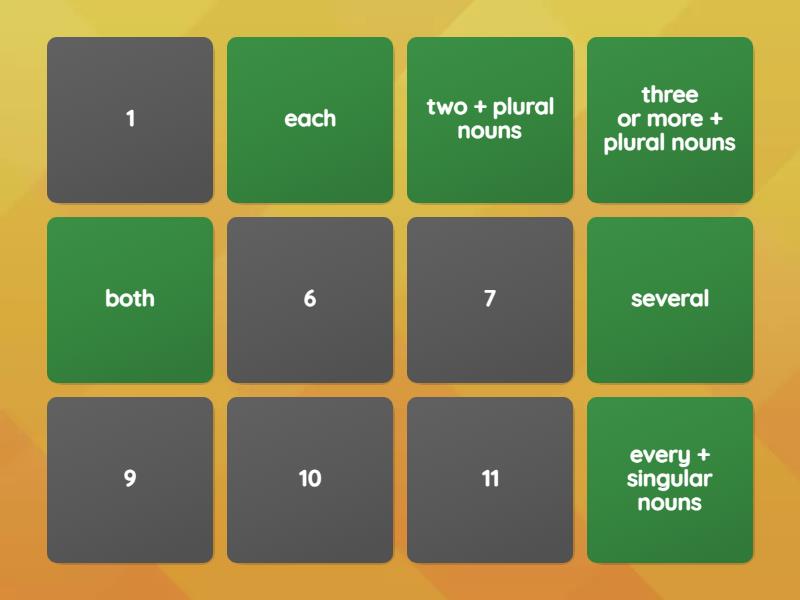 each - every + singular nouns, both - two + plural nouns, several - three or more + plural nouns, to talk about one person, animal or thing - each, talk about two people, animals or things - both, to talk about three or more people, animals or things - several,