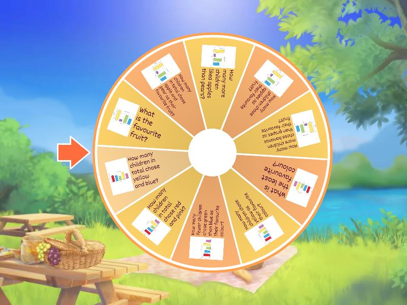 1) What is the favourite fruit? a) Bananas b) Grapes c) Apples d) Pears 2) How many children in total chose apple and pear as their favourite fruit? a) 10 b) 12 c) 14 d) 16 3) How many more children liked apples than pears? a) 6 b) 10 c) 8 d) 2 4) How many children chose apples as their favourite fruit? a) 2 b) 8 c) 4 d) 6 5) How many more children chose bananas than grapes as their favourite fruit? a) 2 b) 5 c) 10 d) 8 6) What is the least favourite colour? a) Red b) Blue c) Green d) Pink 7) How many children chose yellow as their favourite colour? a) 9 b) 10 c) 2 d) 4 8) How many fewer children chose green than blue as their favourite colour? a) 1 b) 2 c) 4 d) 3 9) How many children in total chose red and pink? a) 10 b) 12 c) 16 d) 14 10) How many children in total chose yellow and blue? a) 16 b) 10 c) 12 d) 14