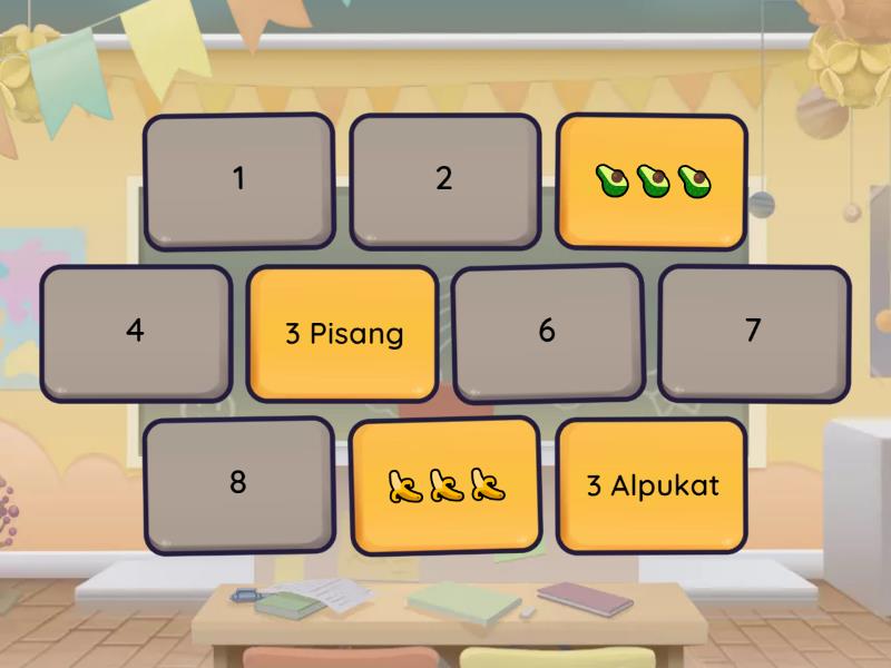 🍌🍌🍌 - 3 Pisang, 🥑🥑🥑 - 3 Alpukat, 🍓🍓🍓🍓 - 4 Strawberry, 🍎🍎🍎 - 3 Apel, 🍉🍉 - 2 Semangka,
