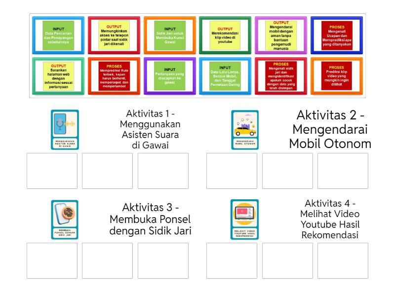 Aktivitas 1 - Menggunakan Asisten Suara di Gawai: , , , Aktivitas 2 - Mengendarai Mobil Otonom: , , , Aktivitas 3 - Membuka Ponsel dengan Sidik Jari: , , , Aktivitas 4 - Melihat Video Youtube Hasil Rekomendasi: , , ,