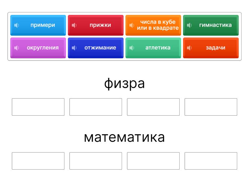 физра: прижки, гимнастика, атлетика, отжимание, математика: примери, задачи, числа в кубе или в квадрате, округления,