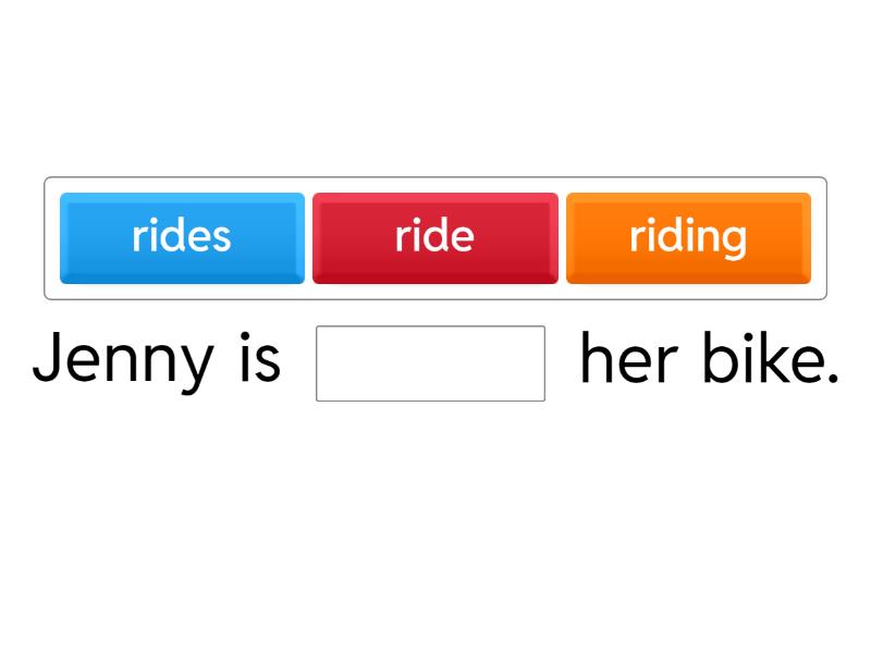 Jenny is ____ her bike. Jim ____ ____ TV. Cats ____ like ____. My friends ____ ____ football. His sister is ____. She ____ reading. My brother and I ____ video games a lot. Look! That dog ____ ____. ____ you ____ TV? They ____ ____ homework. Is your mother ____ a cake? He ____ ____ to school. He is only five.