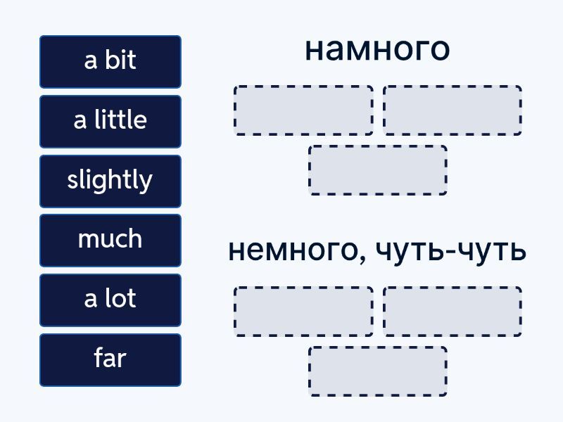 намного: much, far, a lot, немного, чуть-чуть: a little, a bit, slightly ,